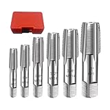 プロフェッショナルナショナルパイプテーパーパイプタップセット6個パック ねじ山修理クラフト用炭素鋼ハンドタップ 収納ケース付き栓ネジエクストラクター付き
