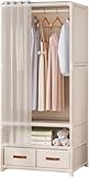 Scifimp ワードローブ クローゼット 洋服収納 ハンガーラック 引き出し付き 大容量 防塵防虫防湿 簡単組み立て式 ドアカーテン付き 省スペース 多機能 衣類収納ラック リビング 寝室 書斎 日常整理 生活場面幅広く対応 個人・家族向け 実用的 長期使用に適した