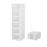 【万博出展ブランド】折りたたみ シューズボックス [3秒で組み立て完了] 透明で中身が見える 靴箱 省スペース 高耐久 荷物入れにも シューズケース (ホワイト, 6段)